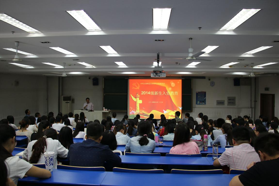 为提高学部研究生新生对党的认识,帮助其端正入党动机,近日,研究生院党委在8号楼J204举行新生入党教育活动。教育学部、公共事务学部和城建学部全体2014级研究生新生参加了此次活动。研究生院党委书记黄巧华教授、党委秘书李冲老师出席会议。