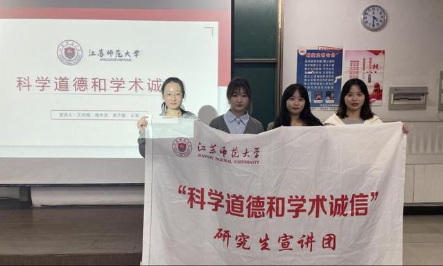 首先,公共管理与社会学院王诗涵对“学术研究”、“学术道德”、“学术诚信”进行了详细阐释,指出学术诚信是学术发展和社会进步的基石,呼吁大家共同营造风清气正、互学互鉴、积极向上的学术生态。随后,生命科学学院缪宇尧结合具体案例,从生命科学角度讲解了动物实验的伦理要求,引发研究生们的重视和反思。紧接着,生命科学学院姜子萱就“如何正确署名”和“不当署名产生的原因及危害”进行了分析,号召大家在学术活动的各个环节都应恪守学术规范。最后,美术学院王莹从研究生密切关注的“学术论文发表”角度出发进行宣讲,希望大家都能修严谨学术之风,走正确学术之路。