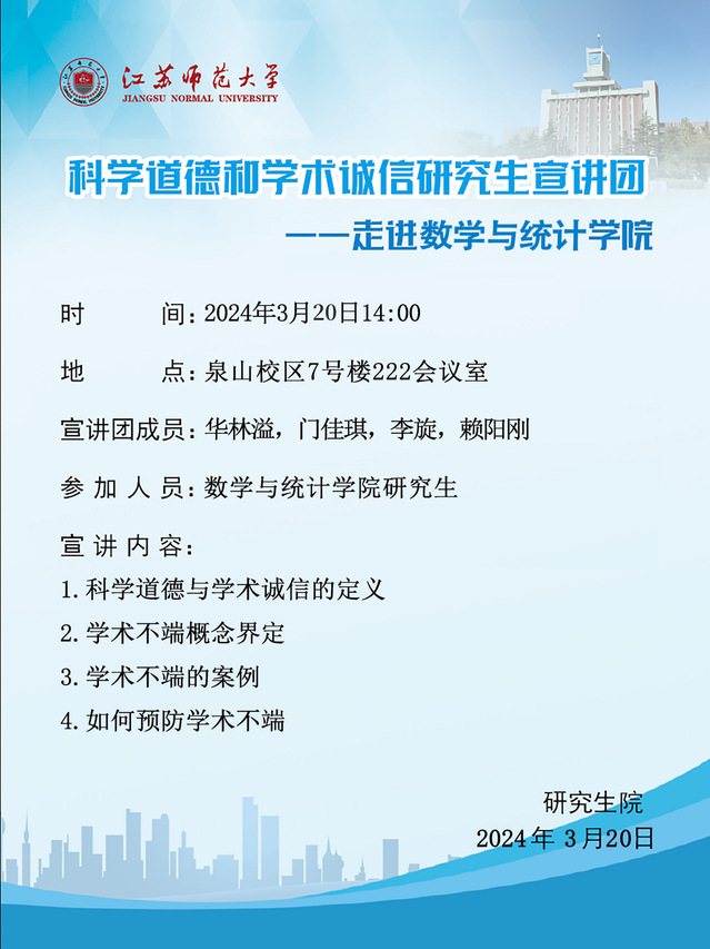 科学道德和学术诚信研究生宣讲团走进数学与统计学院