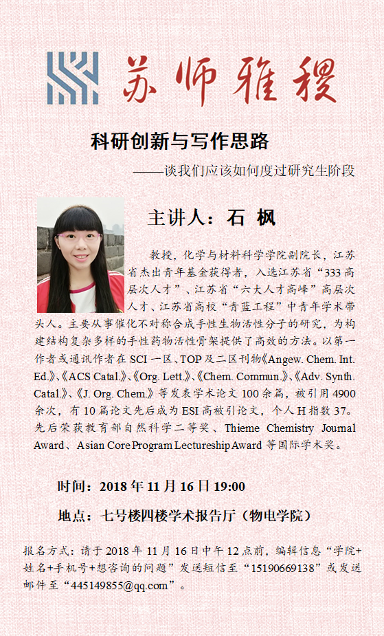 关于举办第五期研究生“苏师雅稷”讲坛的通知